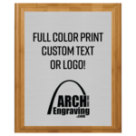 These genuine bamboo plaques feature a clean, natural look that complements any recognition or award. Available in multiple sizes, each plaque is ¾" thick with keyholes on two sides for easy wall mounting. We can customize your plaque with a mounted plate, direct laser engraving, or full-color direct printing. Each plaque is individually boxed and ready for presentation or display.